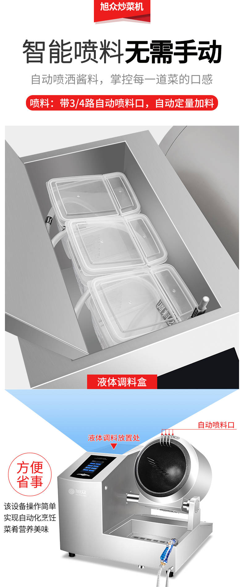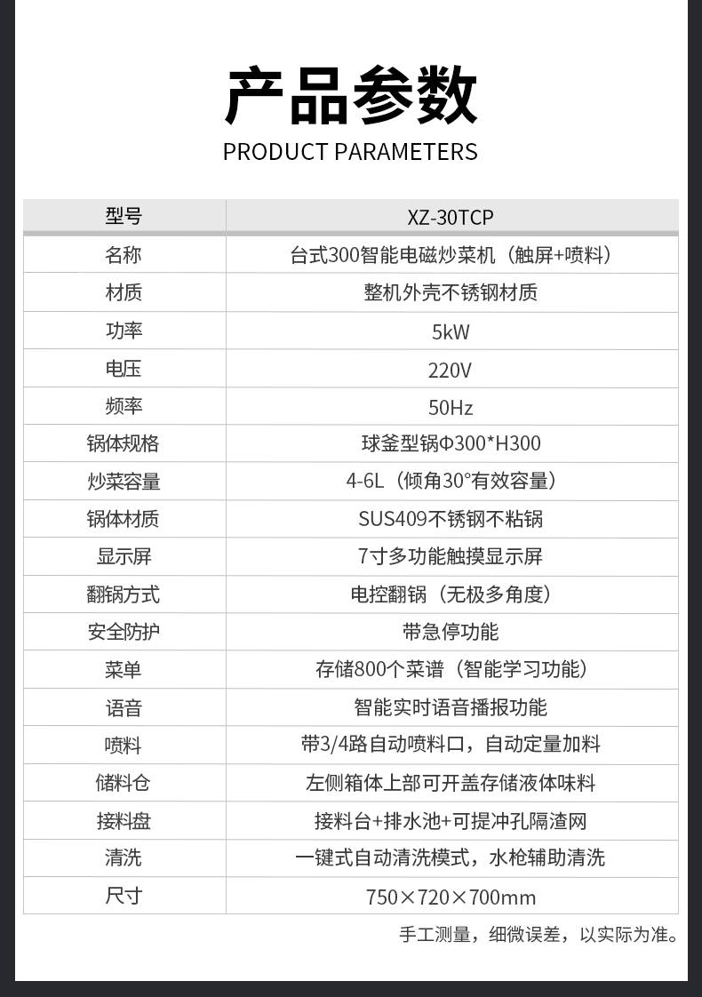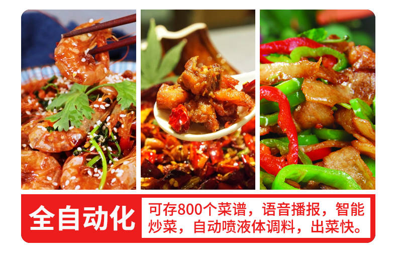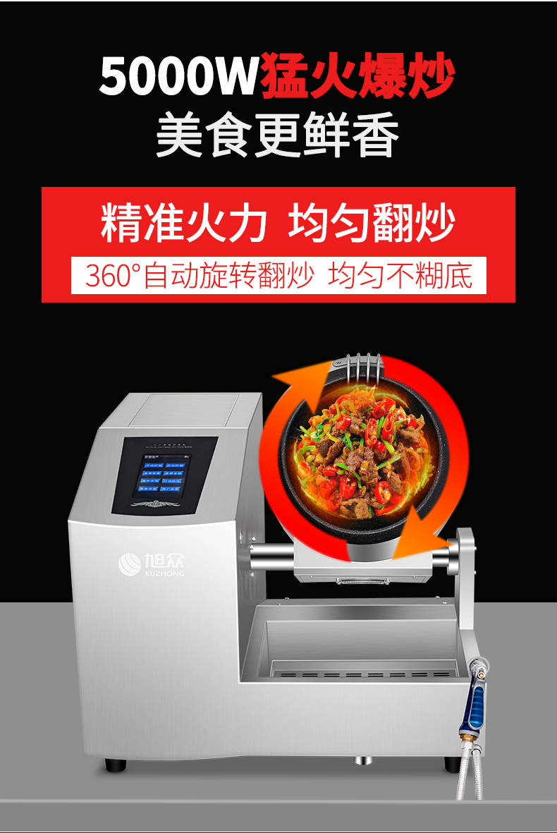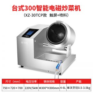 XZ-30TCP臺式300智能電磁炒菜機(觸屏+噴料),可以實現自動化烹飪過程的智能化設備,語音播報、自動噴料、旋轉翻炒、快速出菜。實現自動化烹飪,新一代微電腦操控智能烹飪設備、顛覆傳統炒菜模式。5000W猛火爆炒美食更鮮香