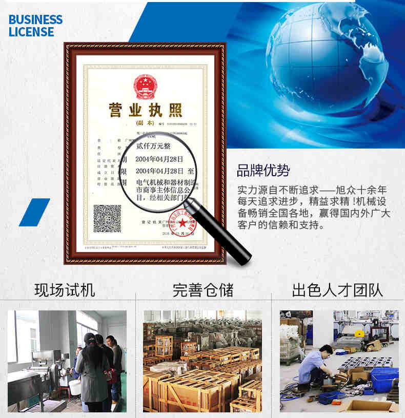 廣州旭眾食品機(jī)械有限公司是一家集科研開(kāi)發(fā),生產(chǎn)設(shè)計(jì),營(yíng)銷服務(wù)為一體的現(xiàn)代化生產(chǎn)企業(yè)?,F(xiàn)代化生產(chǎn)車間,精湛制造技術(shù),所產(chǎn)機(jī)械歷經(jīng)市場(chǎng)重重考驗(yàn),不斷贏得海內(nèi)外客戶的贊譽(yù)。