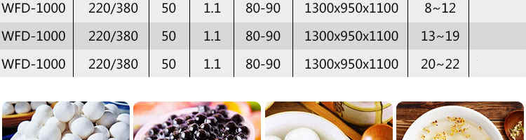 VFD-1000無(wú)餡湯圓機(jī),本機(jī)可生產(chǎn)無(wú)餡湯圓、珍珠湯圓、桂花湯圓、奶茶所用的珍珠、檳榔紅丸、工藝品等。規(guī)格有8-34mm,可根據(jù)客戶要求定制。適用于個(gè)體戶、食品廠、學(xué)校等單位食堂。可滿足不同客戶群體。免費(fèi)提供工藝技術(shù)。